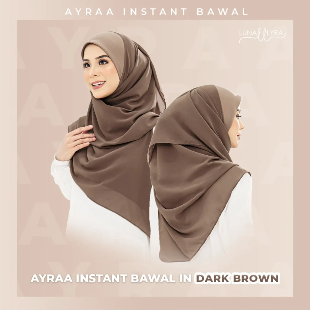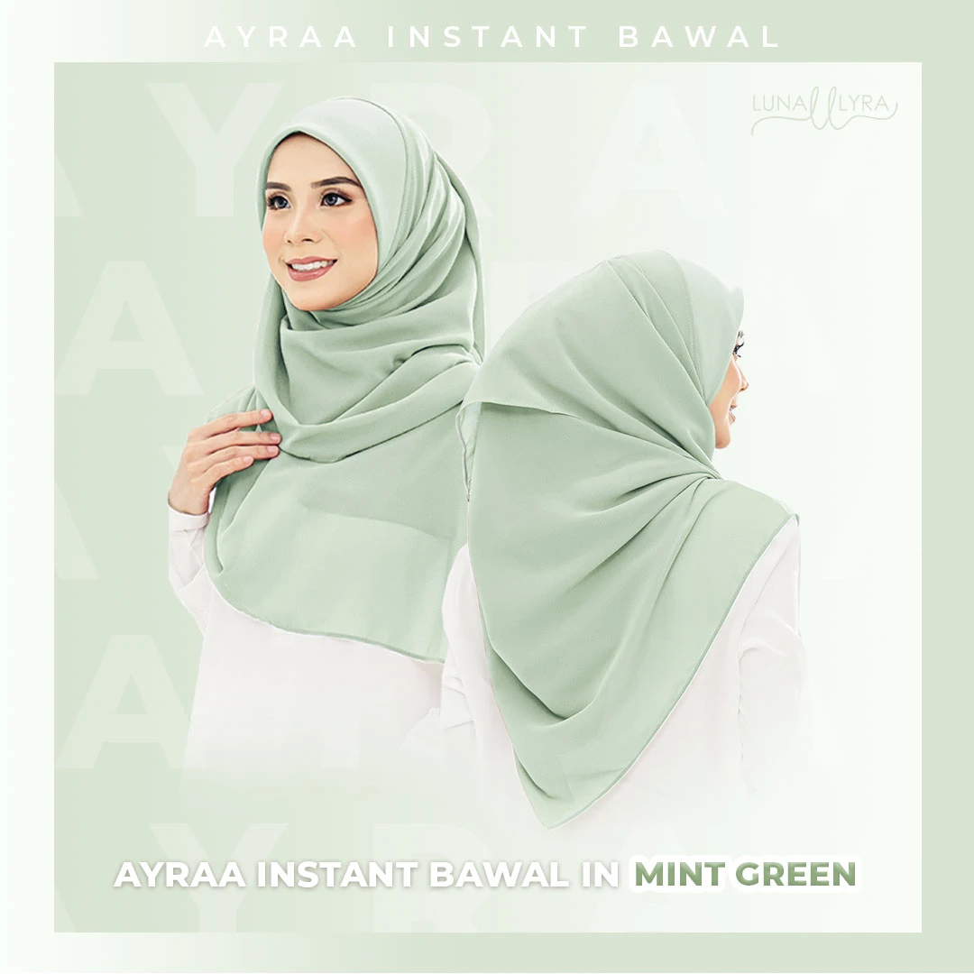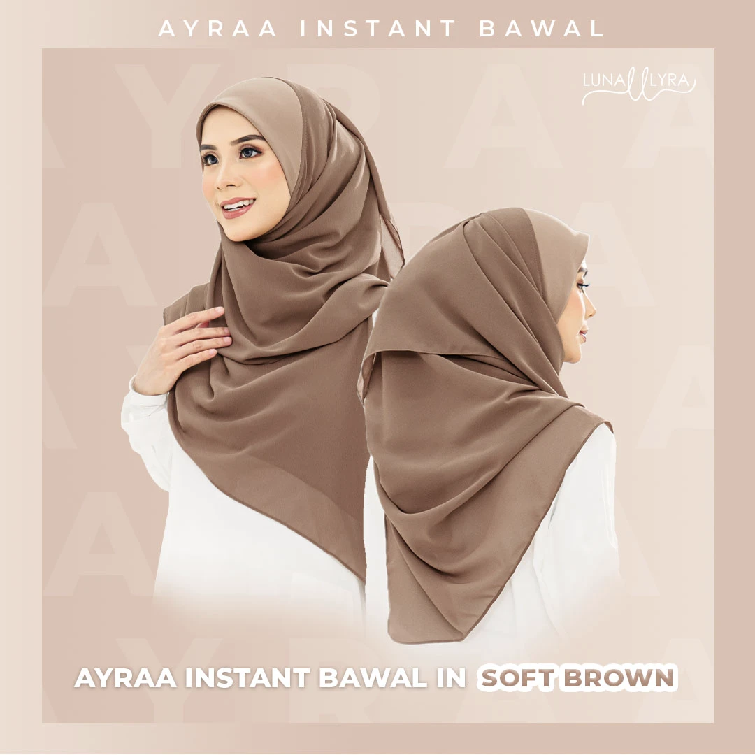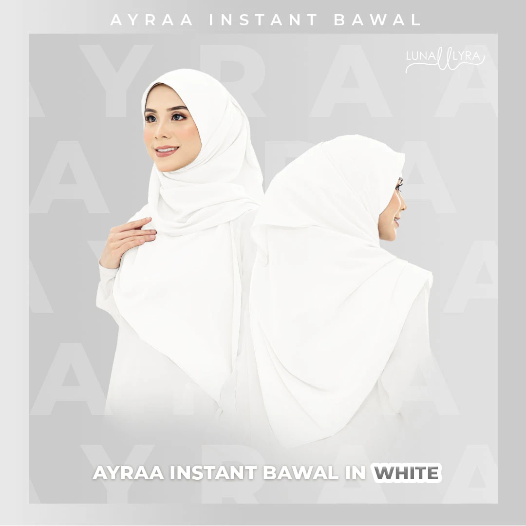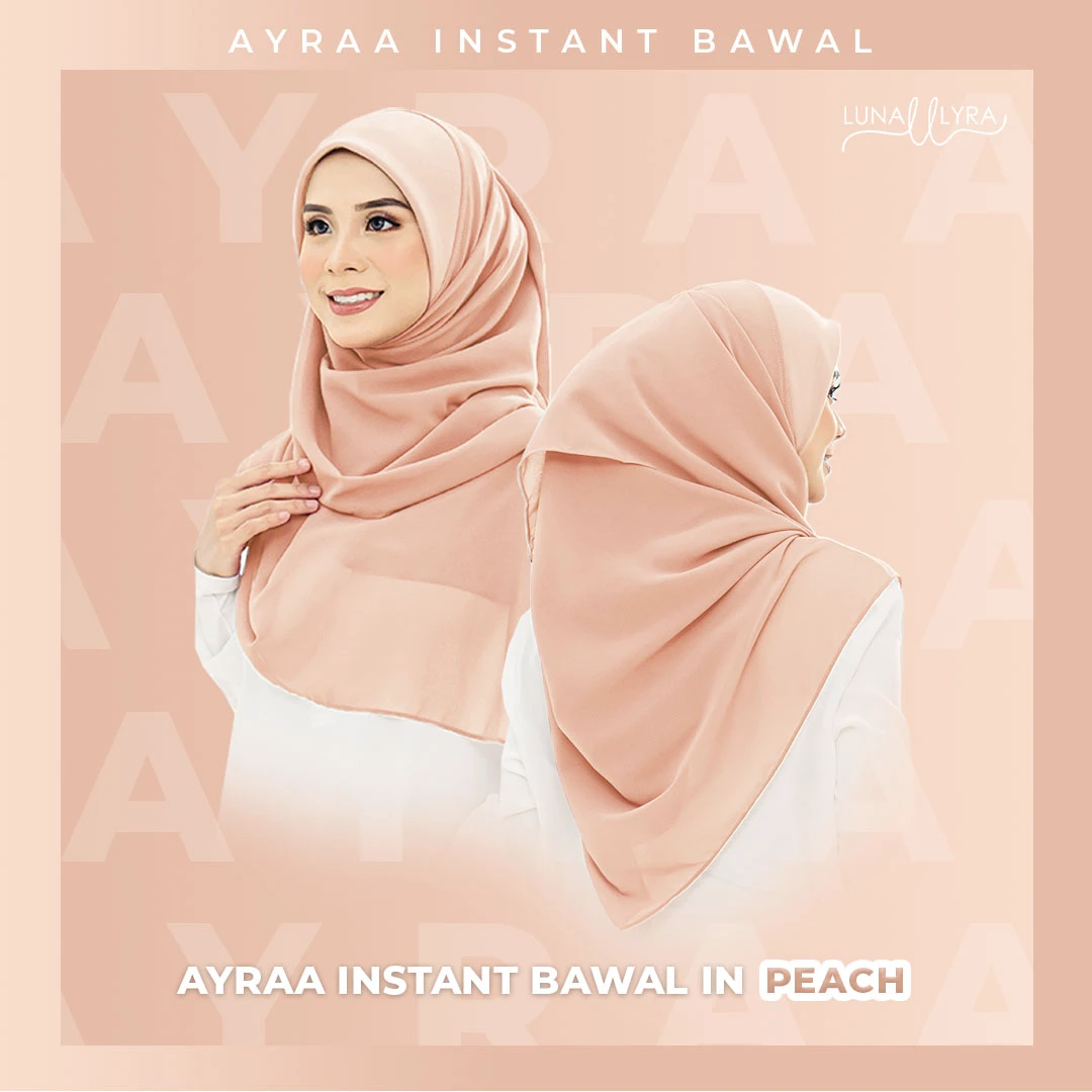 Tudung bawal Instant berukuran 50" yang diperbuat daripada material heavy chiffon dan awning material scuba. Ayraa Instant Bawal mudah digosok, sejuk, tak jarang dan tidak mudah kedut. Gosok sekali sahaja, pakai berkali-kali.